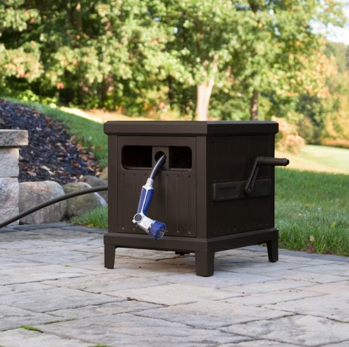 - Cabinet holds up to 150-ft of 5/8-in garden hose