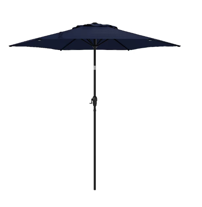 Style Selections 7.5-ft Steel Blue Push-button Tilt Market Patio Umbrella