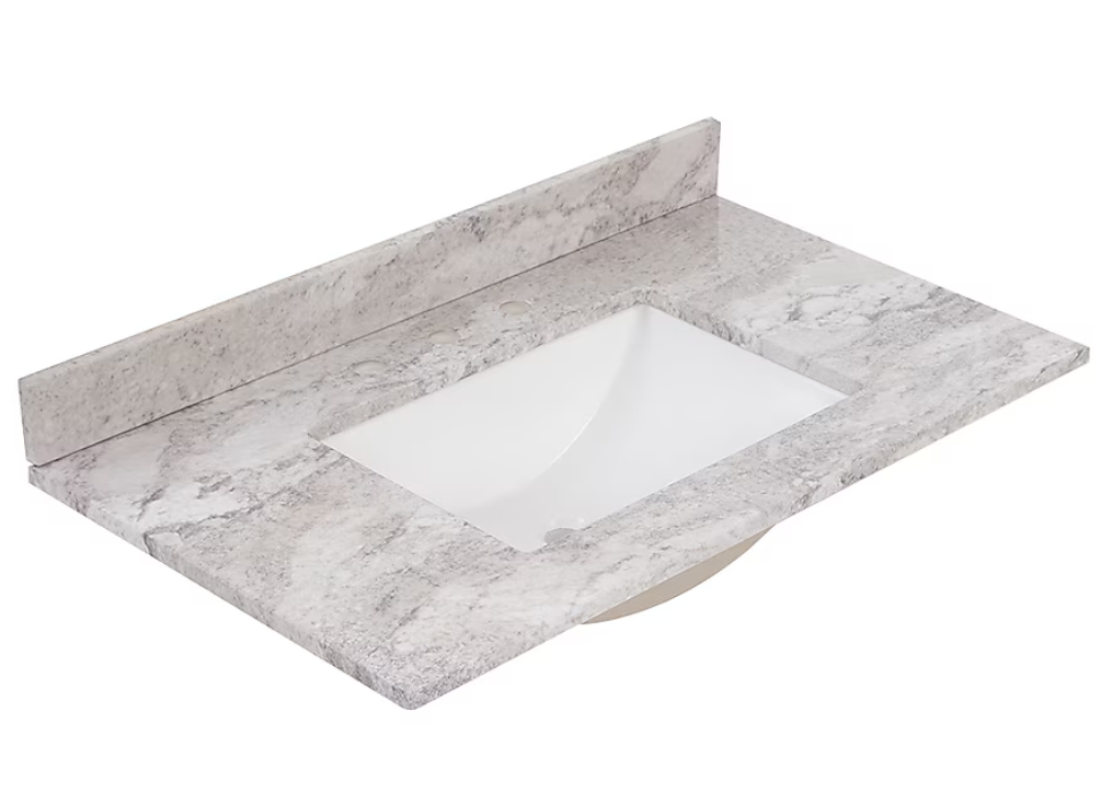 My guest bathroom renovation featured a Style Selections cultured marble top in “Carrara White,” and visitors frequently mistake it for natural stone. The subtle veining patterns have remarkable depth and variation, avoiding the artificial uniformity that plagues lower-quality imitations.