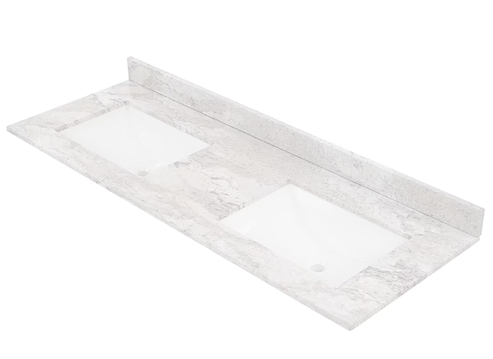 For master bathrooms and shared spaces, Style Selections offers several double-sink vanity top configurations that balance personal space with efficient use of bathroom square footage.